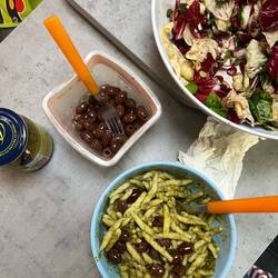 Pičimo proti nekemu luštnemu italjanskemu mestecu Portogruaro. Prikupen glavni trgec, a malo postrani stolpek🤭. Tre macchiati (s čudovitim razgledom) kasneje… že iščemo en velik Conad, za zadnje šopingiranje. Si zaželim makarončke s pestom in olivami za kosilce. Zraven pa eno veliko solato!