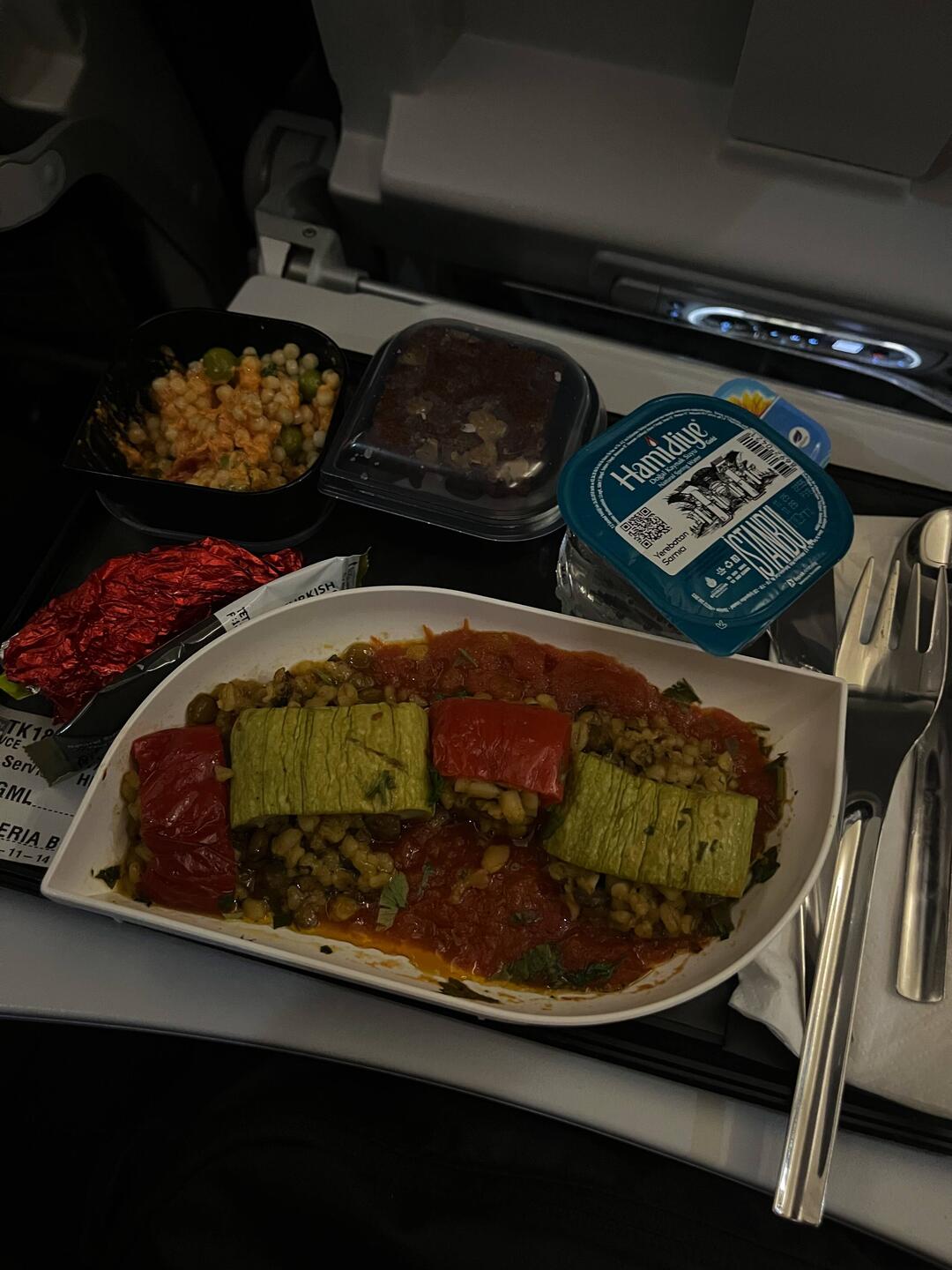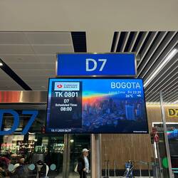 Prvi let gre hitro mimo, dobri dve urci. Dobim svoj veganski meal in me prijetno presenetijo s polnjenimi bučkami in paprikami z ajdo in lečo! Čez noč osem urni postanek v Turčiji… najprej se nekam čičnem in malo pomalcam, potem eno epizodo Housa. Nato se dam horizontalno in mi kljub izredno svetlim lučem za eno urco uspe celo zaspati. Potem se odločim mal premaknit in se sprehodim na čist drug konec letališča, kjer najdem malo bolj temen konec. Po pol urce počitka me iz tam vržejo ven, ker bo kmalu boarding. Grem samo čez in mene in še tri tudi tam pošljejo ven… na tej točki je ura že pet in zdaj pač bedim do šestih, ko pridejo na ekran informacije za Gate. Medtem si zrihtam hostel za dve noči v Madellinu. Ošvignem uč pri eni kavarni….espresso 6€🥲. Bom raj počakala na uno švoh kavo na letalu.
