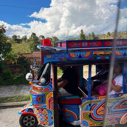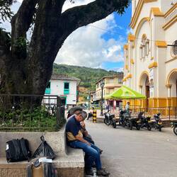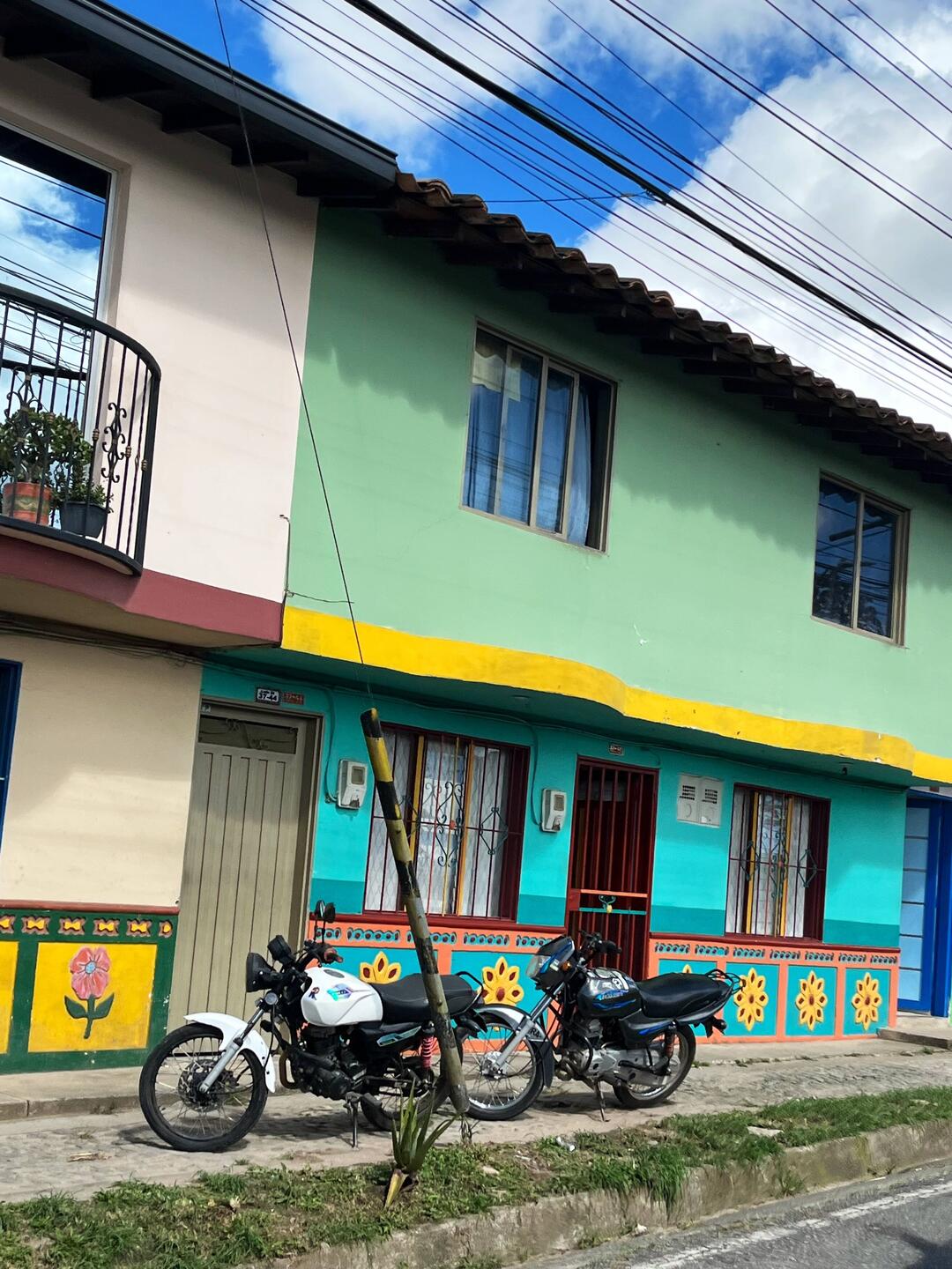 Vožnja je prelepaaaa. Dvignemo se iz Medellina, ki je skrit med gorami. Lep razgled na mesto in obcestne soseke. Na eni točki odvijemo iz glavne ceste in razgledi postanejo še lepši. Gore in palme se izmenjujejo🌴…