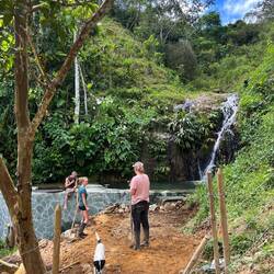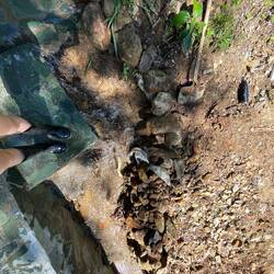 Drugi del je bolj naporn; vsi štirje se vržemo v delo z dvema lopatama, eno sekirco in štirimi pari rok👐! V dveh urah uspemo zamaknit prvi nivo in blato prenest na en drug konec, kjer z njim utrdimo določeno kamenje. Pridemo do ugotovitve, da bo drugi nivo velik težje naredit, saj je klančina skoraj pol metra visoka.