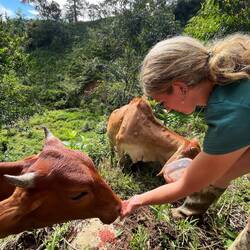 Jazz me po zajtrku pelje na kratek sprehod okoli tele kmetijice🤭nahraniva ribice v ribnikih, potem pa še neseva sol dvema kravicama, ki se cele dneve šetata po zelenih hribčkih gor in dol. Zelo se radi cartata, to je očitno🙈. Pelje me še do bazena in slapa, ki ju imamo 30sekund stran. Tako lepo, da par minut sam stojim in gledam. Že vidim da se bomo vsak dan kopali😍😍!