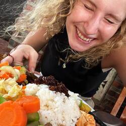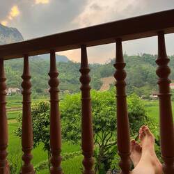 Medtem ko grejo ostali prečekirat jamo, kjer sem sama že bila, grem jaz na en solo kofetk med riževimi polji❤️.