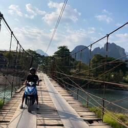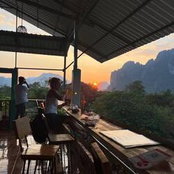 Malo mesto, objeto z naravo! Dvourna vožnja na natlačenem kombiju, pa smo že v mestu Vang Vieng!