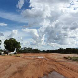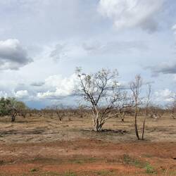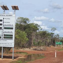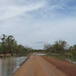 Floodways machen die Fahrt zur Schlammschlacht. In einer 1 km langen Modderstrecke setzen wir gerade noch nicht auf. Geschafft und mit rotbraunen Camper geht es auf den BARKLY HWY...もっと詳しく