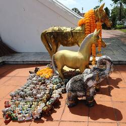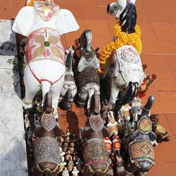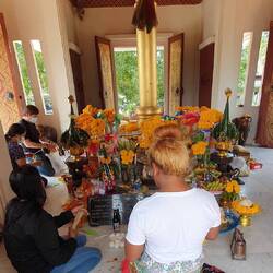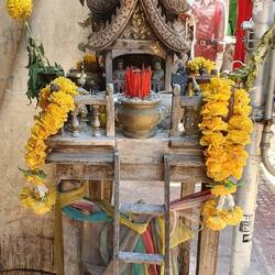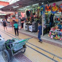 Einmal im Jahr ist rund um die Tempelanlage für 1 Woche Markt. So ist der Weg zum Haupteingang des Tempels wie ein Spießrutenlauf. Wir wären so gerne geblieben, aber der (Mini)Wagen von Kalim läuft - auch um schön gekühlt zu bleiben - denn es soll auch noch in die Altstadt PHUKET gehen...