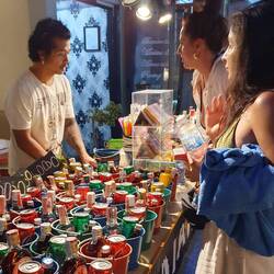 Auf einem kleinen Amulettmarkt soll es der gemeinsame Spitzbart sein, der uns ins Gespräch bringt. Wir müssen kleine Geschenke 🎁 entgegen nehmen und bereuen, unsere Souvenirs aus Hannover nicht dabei zu haben...