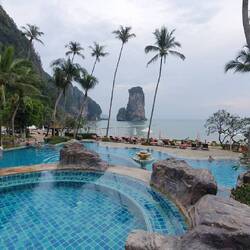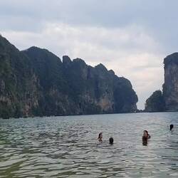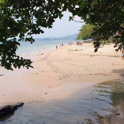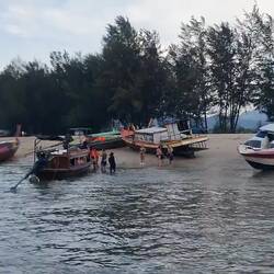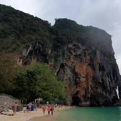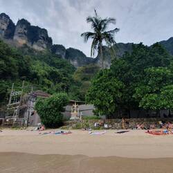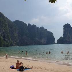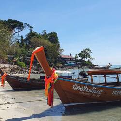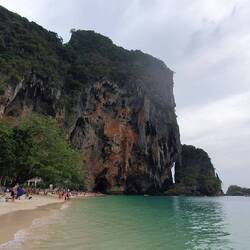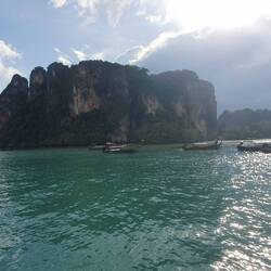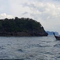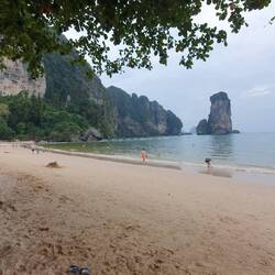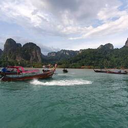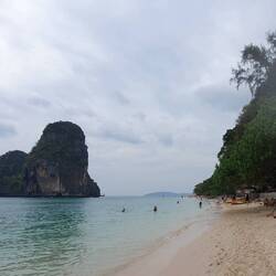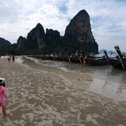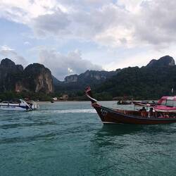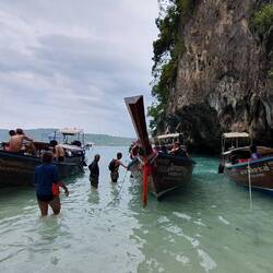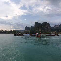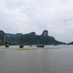 Der heutige Strand ist nur mit dem Boot zu erreichen. Also geht's nach einem kurzen Frühstück zum Strand von AO-NANG. Die Longtailboote fahren one way für 100 THB nach RAI LEH East. Es ist heute leider bewölkt, ☔️ Regenwahrscheinlichkeit bei 40%.