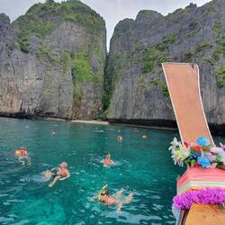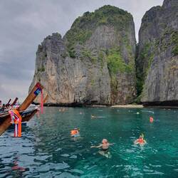 Unser Pinguin-Freund Klaus war vor 22 (!) Jahren bereits auf dieser Insel und hatte von der MAYA BAY geschwärmt. Wohlwissend, daß zunächst der Tsunami und dann der wieder einsetzende Massentourismus alles verändert hat!