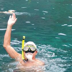 Immerhin konnten wir an 5 anderen Plätzen schwimmen und schnorcheln gehen, haben viele bunte Fische, aber keinen Leopardenhai vor der Taucherbrille gehabt.