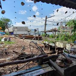 Aber unser Scout SONy ist auf der Insel der Pfahlbauten gut bekannt, auch unser grün-weisses Band und wohl auch mein grauer Schopf. So werden wir mit einigen Minütchen Verspätung unserem Boot zugeführt, das Abenteuer geht weiter...
