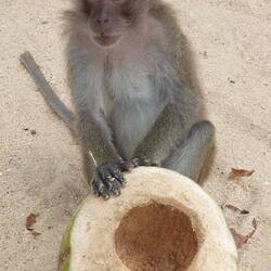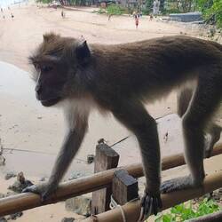 Uns zieht es zunächst an den Strand, auch nur 200 m weit. Die Beine wollen mehr, also folgen wir der Küste bis zum MONKEY TRAIL. Eine übermütige Affenbande beäugt die Besucher und hält nach Leckereien Ausschau.