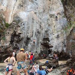 Die Bootspartie geht vorbei am RAILAY BEACH, nicht ohne einen 10-minütigen Platzregen, wir sind alle pitschnass...