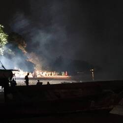 Ich entdecke den Betreiber der vielen JETSKIs und frage nach Benzin. Der hilfsbereite Mann erkennt meine Situation sofort und baut aus einer Wasserflasche eine Benzinspritzpistole. Der zum Tatortreiniger avancierte Hüter der Wassersportgeräte gibt uns eine gasoline Fußwäsche und ein abschließendes Seifenbad!