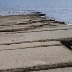 Um es gleich vorweg zu nehmen: Die Werbetreibenden haben eine zu große Welle geschoben - oder uns sind die steinalten Zeugnisse der Vergangenheit, trotz Ebbe, einfach unter Wasser geblieben. Nur sich ins, geschweige unter Wasser zu begeben, ist verboten!
