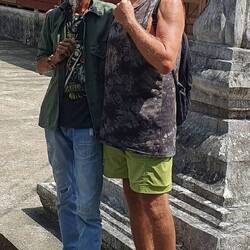 An einem traditionellen buddhistischen Krematorium treffen wir auf Louis. Er reiste als Archäologie-Prof. schon in viele Teile der Welt und freut sich, dass wir Männer gemeinsam AUSTRALIA auf unserer Kopfbedeckung stehen haben...