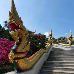 1260 unregelmäßige, thailändische Treppenstufen aufwärts, und natürlich auch wieder abwärts, haben meine Kniegelenke zum Erzittern gebracht. Aber die Aussicht von der Anhöhe des 🐅 war echt lohnenswert!