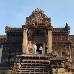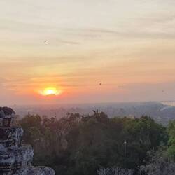 König Yashovarman der 1. ließ vor über 1000 Jahren seinen Staatstempel auf dieser 70 m hohen Anhöhe errichten. Auf diesem hinduistischen Bergtempel wollen wir den Sonnenuntergang erleben.