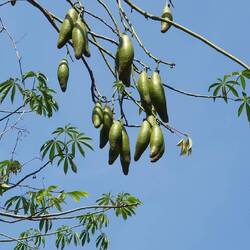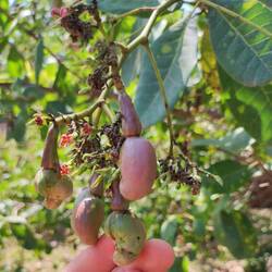 Im Garten entdecken wir einen Baumwollbaum, diese noch unreifen Früchte lassen wir uns aufschneiden. Gut zu erkennen die Baumwollfäden, aus diesem Material fertigt die Familie auch ihre Schlafkissen. Die Kerne sind geröstet in der Küche sehr beliebt...