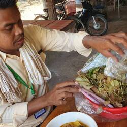 Der kleine Hunger meldet sich, unser 3-Rad bringt uns zu einer einheimischen Familie am Rande einer Staubstraße. Hier wird für das leibliche Wohl der Ein- und Anwohner des Dorfes gesorgt.