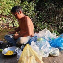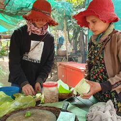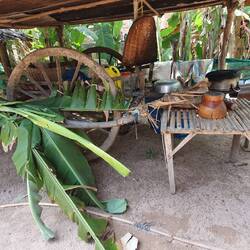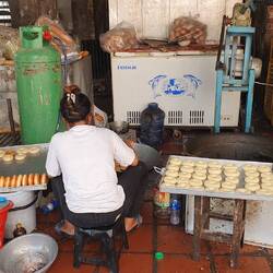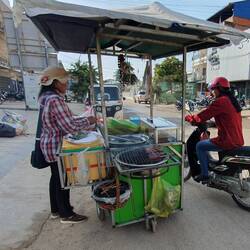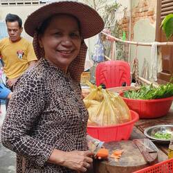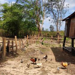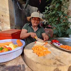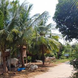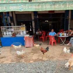 Etwas abgelegen von der Hauptstraße steht ein Holzhaus einer kambodschanischen Familie. Die Großfamilie vierter Generation betreibt eine kleine Garküche, fast alle Zutaten gedeihen auf dem Grundstück: Hühner, Kühe, Obst & Gemüse, Gewürze.