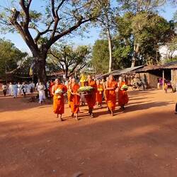 Es ist Sonntag und Vollmond. Die Buddhisten laufen zur Hochform auf und frischen mit ihren orangfarbenen Gewändern die Tempel angenehm auf.
