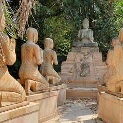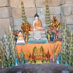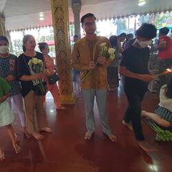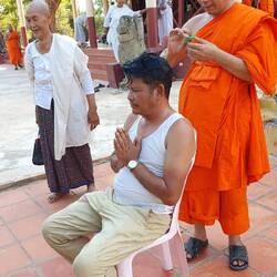 Einige Männer bekamen an diesem Tag ihr Haupthaar rasiert. Unzählige Lotusblumen wanderten von den Verkäufern zu den Füßen Buddhas.