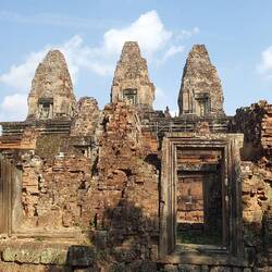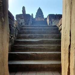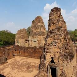 PRE RUP heißt die erste Station. Der Name ist "vom drehen des Körpers", eines Krematoriumrituals, abgeleitet. Wir erklimmen wieder mal eine 3-stufige Pyramide und erfreuen uns der Aussicht auf benachbarte Tempel.