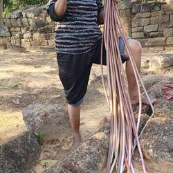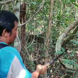 Der Weg ist sehr abwechslungsreich, wir queren viele Bäche, es geht Bergauf und Bergab, oft ohne Schatten. WENG schreitet mit seiner Machete voran und sorgt für einen freien Weg. Es gibt viele Dornen und Stachel und andere Unwegsamkeiten. Schaust du nach oben, verfängst du dich in pflanzliche Schlingen - schaust du nach unten, wird dir die Kappe, Brille weggenommen. Die Kratzer an Armen und Beinen häufen sich, wenigstens einen Ausrutscher hat jeder von uns. Nur unsere Guides sind mit ihren FlipFlops sowas von trittsicher, haben wir das falsche Schuhwerk gewählt?