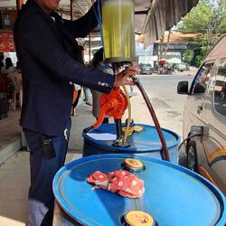 Erfrischendes kühles Wasser kredenzt KLAT aus seiner Tuk Tuk Kühlbox...