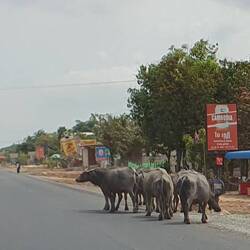 Mit Buffalo (B.) sind wir am Nachmittag in einer kambodschanischen Kutsche (REMORK Tuk Tuk) unterwegs. Die Kutscher scheinen sich gängige Spitznamen zu geben. Die können wir uns auch merken und ggf. schreiben.