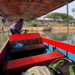 Wir sind froh, dass es kein kambodianisches Modell ist, dort sitzen die Gäste in einem Anhänger, welcher von einem Moped gezogen wird. Der direkte Kontakt zum Chauffeur ist schwierig, und diese Gefährten namens REMORK sind auch langsamer (gemütlicher?) als seine indischen Kollegen...