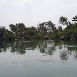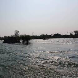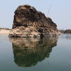 Wir sind in der Mitte der Trockenzeit, einige Monate später sind wohl nur noch die Spitzen der stufenförmigen Steinkegel zu sehen.