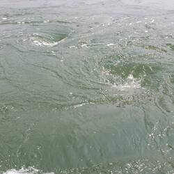 Die Schwimmwesten sind angelegt, das Boot kämpft nun gegen die Strömung, wird oft mehrere Meter gegen den Kurs geschoben. Wir blicken in tiefe Strudel, was für ein unerwarteter Höllenritt!