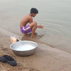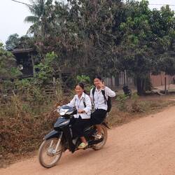 Am Abend versammeln sich die Familien zum gemeinschaftlichen Bad im Fluß, die getragene Wäsche wird in Schüsseln gleich mitgewaschen.Der nächste Morgen beginnt gegen 6 Uhr, die Kinder bereiten sich auf die Schule vor, die Mopeds surren geschäftig entlang der Staubstraße.