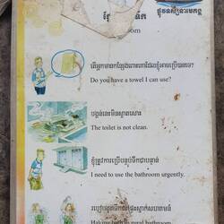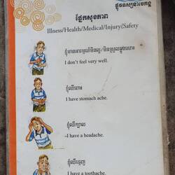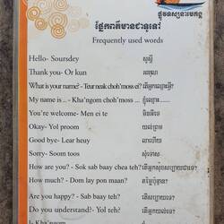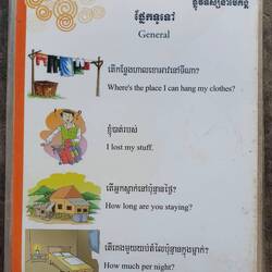 Nach 5 aufregenden Stunden auf dem MEKONG legt unser wildwassertaugliches Holzboot in PREAH RUMKEL an. Wir lernen unsere Gastgeber für die nächsten 2 Nächte kennen, die Verständigung ist nicht ganz einfach, zumal wir keine gemeinsame Sprache sprechen. Die Tochter des Hauses bringt "Non-verbale Communication-Cards" von MEKONG DISCOVERY TRAIL, jetzt können die wichtigsten Sachen abgehandelt werden: Schlafplatz, Mahlzeiten, Kosten.