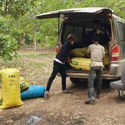 Meinen Beifahrersitz bekommt die hochschwangere Verkäuferin der Bohnen.