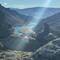 Wrapping up well we plunged down the other side, which was steep and freezing cold. The sun couldn’t reach the road over the mountains and the world became a blur of blue and grey as the icy wind whipped past as we hurtled down. It felt quite hazardous trying not to skid in the loose scree at the side of the road, or lose our cool when the few trucks thundered past. Glad to reach the lower levels, where the sun found us making it considerably warmer and we started to thaw out.