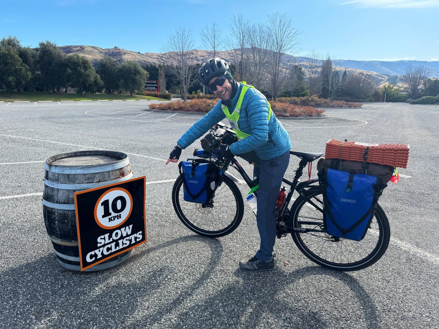 Luckily, a lady we met outside a cafe in Middlemarch took one look at us and our overly laden bikes and promptly took charge. She volunteered her friend Liz to take our panniers ahead for us on her commute to work. Before we knew it, all our worldly goods were whisked away across the hills to be safely deposited at a cafe in Outram, ready for us to collect once we’d puffed our way up and down the 40 miles between. I never asked her name but we will be endlessly grateful to her. Climbing the hills with all our panniers would have taken us much much longer (and almost killed me).