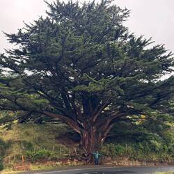 Back on the road and the sun started to shine through the cloud cover. Some great wild mountain scenery as we crossed bridges over large braided rivers. Hit the coast at Bruce Bay where driftwood littered the huge sweep of beach. Passed a Maori burial site at Urupa and then a small Anglican Church, or at least its memorial as the original was destroyed in a cyclone in 2018. Found it very peaceful and graceful - had our lunch there.