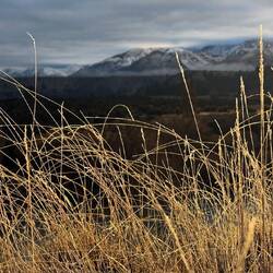 5 June - It was exciting to see the Southern Alps in the distance with dustings of snow. Quiet roads and tracks through agricultural countryside at first, with groups of wee birds flitting from hedge to fencing keeping us company as we pedalled. As the day wore on the landscape became more varied and interesting with limestone outcrops and cliffs. Elephant Rocks lit up by the setting sun was the day’s highlight, before rolling into Duntroon campground as it was getting dark. With minus degrees and snowfall forecast that night, Steve - the caretaker who made his living doing saddlery and livery (!) - kindly let us sleep in the camp hut. No heating, but warmer than our tent, and a wonderful guest book to read and keep up our spirits!