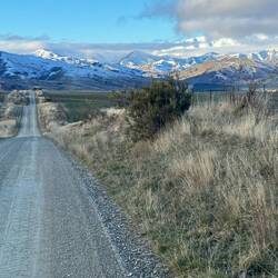 Camp for the night was the Department of Conservation (DoC) ground at Kidds Bush, along the Hunter Valley on the North side of the large lake formed by the Hāwea Dam. After another ~29Km and a few hills, of course. Stunning views along the lake and quiet highway made for a nice cycle (other than the pushing up the few steep inclines). Pulling off the highway, that last bit along the Hunter Valley road was dirt, newly laid and quite ‘clarty’ - we were slow and the surface and tired legs meant we dragged ourselves into the small camp ground with porta-toilets, a covered picnic bench and sink as dusk hit. A very cold, damp and dank evening. The beautiful Milky Way and Southern Cross, overhead - a companion for several of our camps. A visit from a possum in the early hours with its head under the tent apron sniffing around our bagged food was a surprise. It appeared bold as brass, unconcerned by my