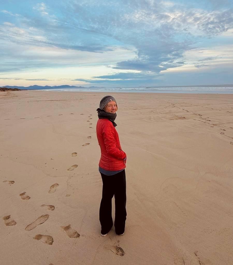 Arai te Uru Nature Reserve and took a walk along the Signal Station Track to the scenic outlook at the end of the headland. The walk gave view after spectacular view in each direction. Of the vast Hokianga Harbour and its swirling turquoise waters and misty mountains in the distance, of the giant sand dunes that when the sun hit them almost glowed, and the endless blue Tasman Sea where according to Maori mythology, two taniwha (sea monsters) lurk, guarding the harbour entrance. Vivid colours painted the landscape, highlighted by the sun which came from behind the clouds. We stood in its warmth and then under the umbrella of the windswept trees during a sudden downpour - trying to take it all in and to store up the vibrant images to remember in the future.