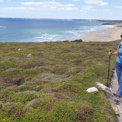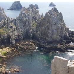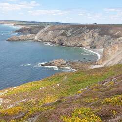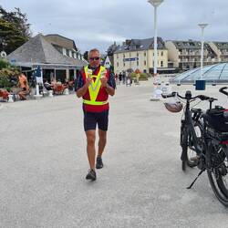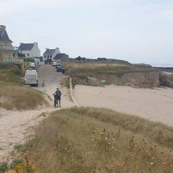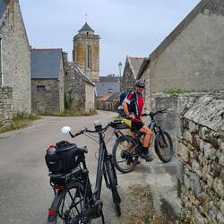 Der Himmel ist bedeckt, 28 Grad und los geht's zu E-Bike Tour. Komoot gibt uns einen Rundkurs vor und mit unserem Bulli geht's nach Audierne. Von dort mit dem E-Bike zum "Pointe du Raz", danach zumLeggi altro