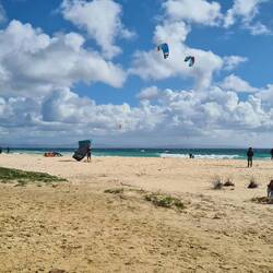 Leider gibt's hier nur Surfspots für Wellenreiter. In einem Surfladen fragte ich trotzdem mal nach. Und siehe da..., einen Spot gibt es. In "Martinhal'" soll es bei östlichen- und nördlichen Winden klappen. Heute war solch ein Tag mit östlicher Strömung. 19 Grad, kleine Welle, ließen keine Ausrede gelten. Heute war somit "Selfietag", ein Tag an dem jeder machen kann was er möchte. Ab gings ins 25 km entfernte Windsurfeldorado. Drei Segel wurden aufgebaut, bis ich endlich die richtige Größe erwischte. Mit 7 qm Segelfläche und 125 l Surfboard unter den Füßen waren dann 2 Stunden Spass angesagt. Schmerzende Knie und Unterarmkrämpfe beendeten den Surftag. Petra hat nun wieder etwas Arbeit, um mich gesund zu pflegen.Read more