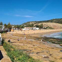 Nach einem ausgiebigen Frühstück fuhren wir mit unseren Bikes, volle Unterstützung, nach Lux und verbrachten den Tag mit Eis essen, Cappuccino trinken und zum Schluss gab's noch weissen Sangria. Wir schauten den Wellenreitern beim Kampf um die beste Welle zu und waren danach völlig ausgelaugt. So kann man auch einen Tag an der Algarve verbringen.Read more