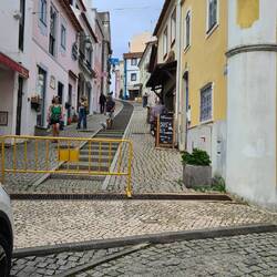 Eine Polonaise zeigt uns den Weg zur Bushaltestelle. Die 714 bringt uns schnell, unser Busfahrer ist ein verhinderter Rennfahrer, zur Endhaltestelle " Cais Sodrè", dem Eingang der Altstadt Lissabons. In dem Metrobahnhof sollte eigentlich ein 24h Ticket gezogen werden. Jedoch weitere ellenlange Polonaisen vor den überforderten Maschinen halten uns davon ab. Zum Glück, wir hätten das falsche Ticket ergattert. Wie mein Guide im Internet recherchierte, gibt's zwei unterschiedliche 24h Tickets. Eins für die Züge und ein Anderes für Bus, Metro, Aufzüge und Standseilbahn. Also an alle: Die Grünen Automaten sind die verkehrten. BLAUE Automaten müssen es sein.