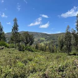 Unser Bulli dieselt durch eine tiefgrüne Landschaft. Auf hohen Graswiesen zwischen unendlich vielen bunten Sträuchern liegen glückliche wiederkäuende braune Rinder. Die Welt scheint zufrieden zu sein. Die Landschaft wird hügeliger. Ein Vergleich mit unserem "Land der 1000 Berge", dem Sauerland, zwingt sich hier auf. Nur ohne Fichten. Immer wieder ziehen geschälte Korkeichen an uns vorrüber.