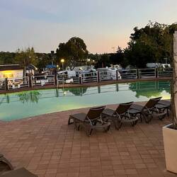 Unser heutiges Etappenziel kennen wir schon vom 11. Mai 2022. Just auf diesem Campingplatz waren wir schon einmal und mit dem Gedanken an das ansässige Restaurant läuft uns heute noch das Wasser im Munde zusammen. Natürlich reservieren wir bei Ankunft sofort einen Tisch und werden wieder nicht enttäuscht.