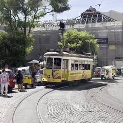 Wir erkunden die Stadt zu Fuss. Es geht hoch und wieder runter. Ich hab den besten Guide der Welt, natürlich ohne Schirm, bei mir, dem zu jeder Attraktion ein paar interessante Sätze einfallen. Schließlich landen wir in dem Haushaltsgeschäft "Pollux". Ein Geheimtip ist es, in dem Restaurant der Dachterasse ein Getränk mit grandiosem Blick über Lissabon zu genießen. Vor uns schraubt sich der wohl bekannteste aller Aufzüge in die Höhe. Der "Elevador da Justa". Gebaut 1902 von einem Schüler "Eiffels". Auch das "Castel", hoch über der Stadt, lassen wir nicht aus. Eine Fahrt mit der Standseilbahn 28 klemmen wir uns, da eine Sardine in ihrem eigenen Saft mehr Platz hat.