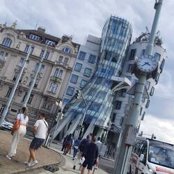 Nach einem ausgiebigen Frühstück (wir haben ja schließlich eine Nacht lang schon nicht mehr miteinander geredet, da gibt es viel zu erzählen), haben wir uns gegen halb 12 auf den Weg in die Stadt gemacht. Einen Second-Hand-Shop und eine ewig lange Toilettensuche später haben wir uns in einen Park gesetzt und dort - wie sollte es auch anders sein - wieder gegessen. Danach haben wir in der Satdt eine Postkarte gekauft, das tanzende Haus besichtigt und schließlich unsere Postkarte auch beschriftet und abgeschickt. Die Laune der Menschen in Prag ist auf jeden Fall ein großer Kontrast zu Amsterdam. Netter zu sein als die Leute hier ist nicht schwer. Zum Abschluss des Abends haben wir im Hostel Spaghetti mit Pesto gekocht.